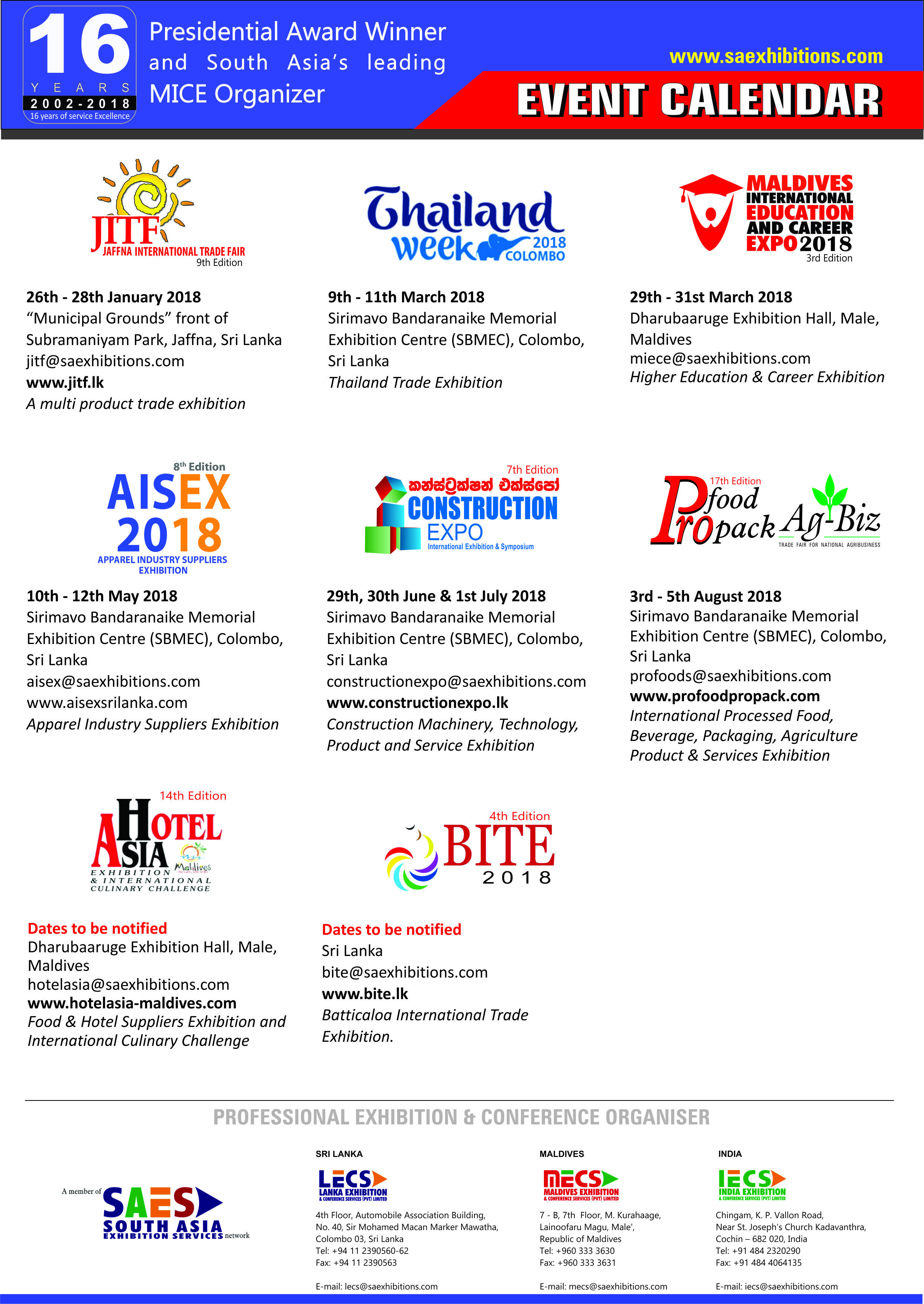 2018 Event Calendar